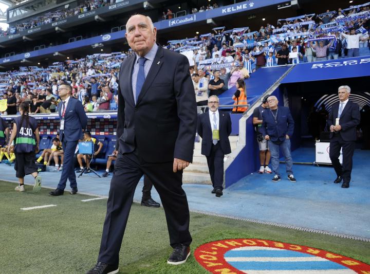 在比赛前,为西班牙人俱乐部工作超过40年的何塞·马里亚·卡尔松受到球迷热烈欢迎。他不仅是俱乐部的前领队,更是一位让人铭记的传奇人物。这一纪念时刻,见证着球迷对传奇的敬意和对球队的支持。球迷们热情高涨,为自己支持的球队呐喊助威,场面热烈感人。
